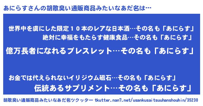 | ヒーロー風カッコイイあだ名 | 『スーパーアニラス』『仮面アニダー』 |