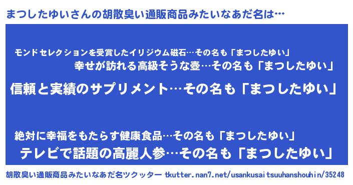 | 意味不明あだ名 | 『とにかく怪しいまつしたゆい』 |