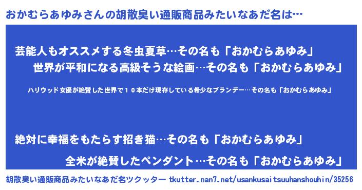 | 意味不明あだ名 | 『住所不定無職おかむらあゆみ(89歳)』 |
