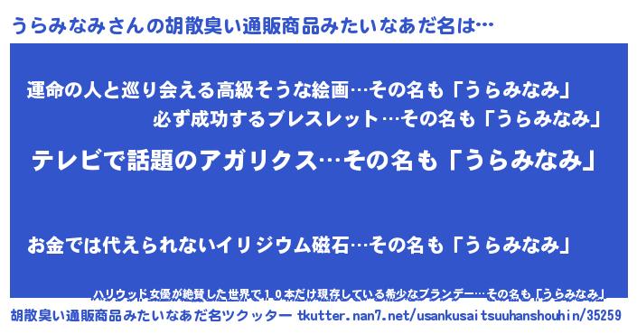 | 肩書あだ名 | 『うらみなみ少将』『うらみなみ総統』 |