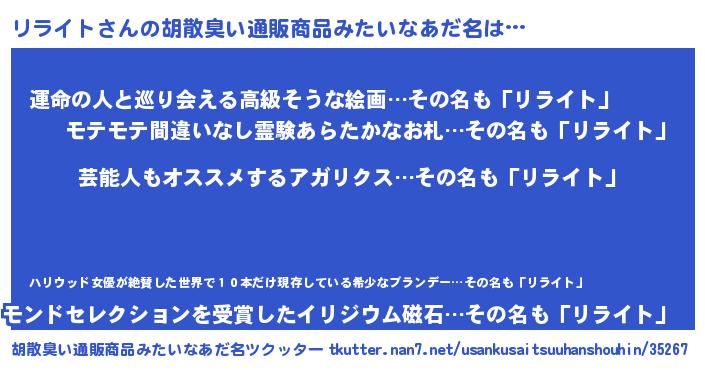 | 恥ずかしいあだ名 | 『リライトデラックス』『リラっちょ』 |