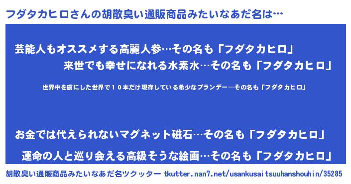 意味不明あだ名 | 『住所不定無職フダタカヒロ(86歳)』 |
