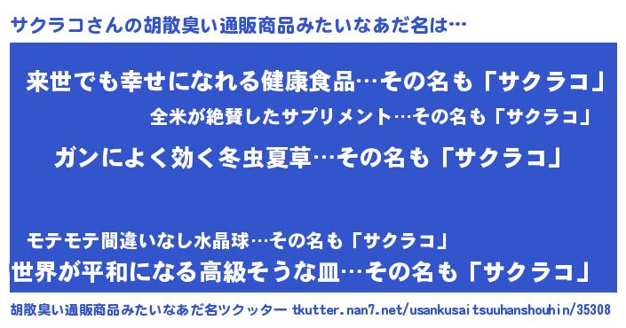 | ヘコむあだ名 | 『サクラコ(震え声)』『豆乳』 |
