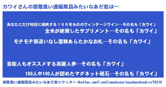| 意味不明あだ名 | 『ペロリンカワイ』『エリンギ科カワイ属』 |