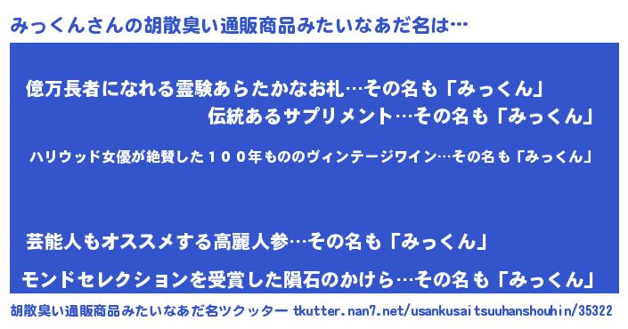 | 意味不明あだ名 | 『住所不定無職みっくん(6歳)』 |