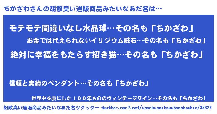| 意味不明あだ名 | 『永久保存ちかざわ』『ペロリンちかざわ』 |