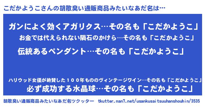 | 意味不明あだ名 | 『とにかく怪しいこだかようこ』 |