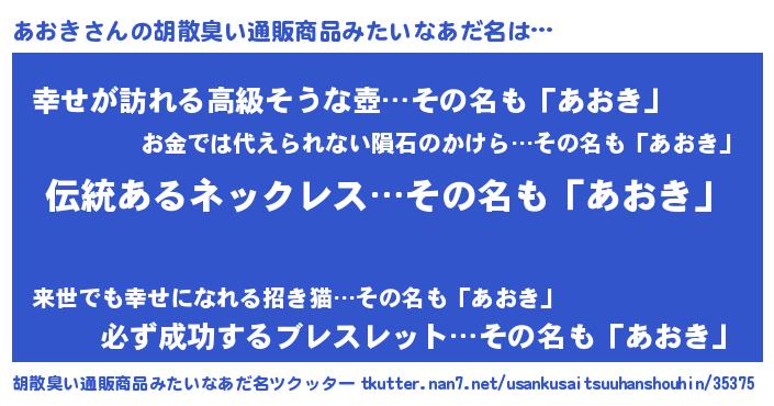 | ヘコむあだ名 | 『あおっ子』『牛乳』『あおにー』 |