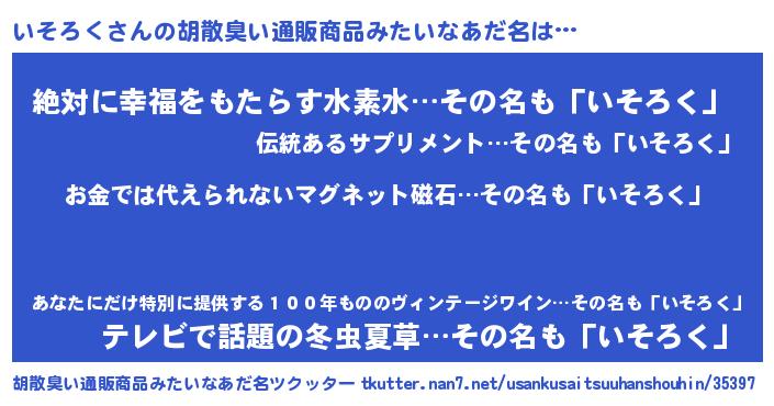 | ヘコむあだ名 | 『いそろく(小並感)』『いそぷりん』 |