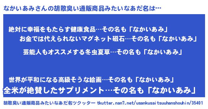 | 意味不明あだ名 | 『自称なかいあみ』『永久保存なかいあみ』 |