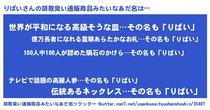 | 意味不明あだ名 | 『眠気覚ましガムりばい味』『自称りばい』 |