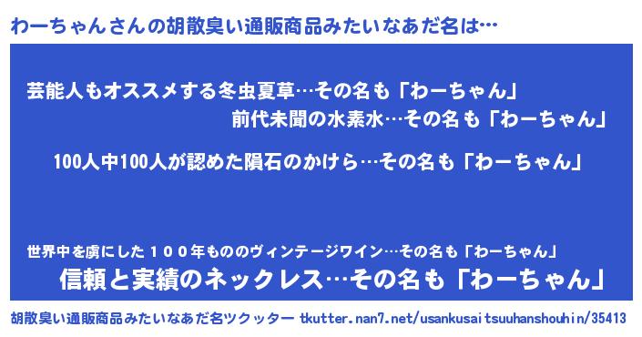 | ヘコむあだ名 | 『わーっちょ』『わーちゃん(苦笑)』 |