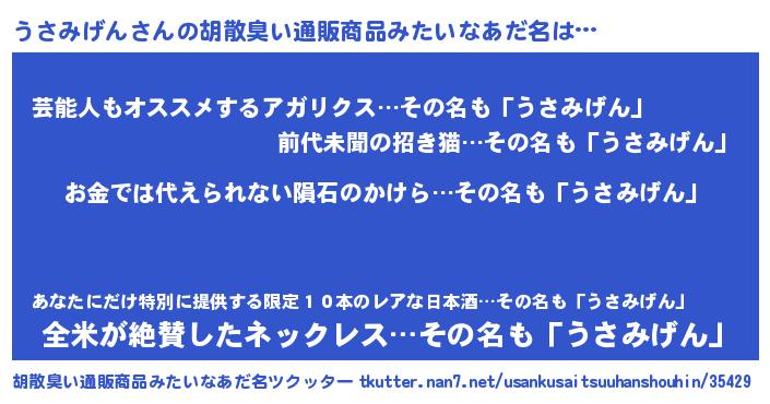 | ヘコむあだ名 | 『うさっちょ』『うさみげん(爆)』 |