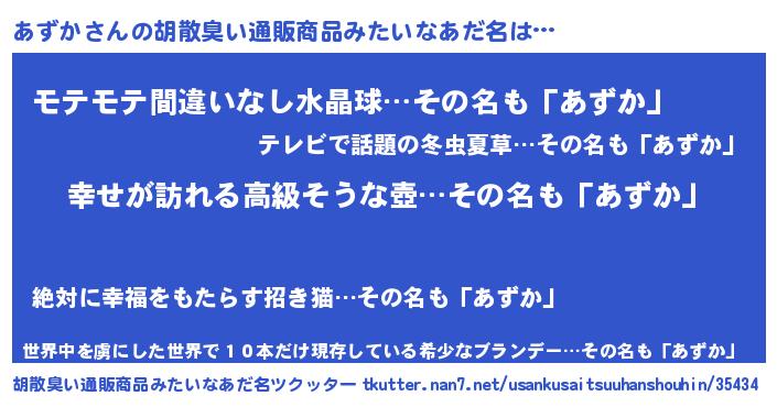 | ヘコむあだ名 | 『牛乳』『あずっふぃ~』『あずっぺ』 |