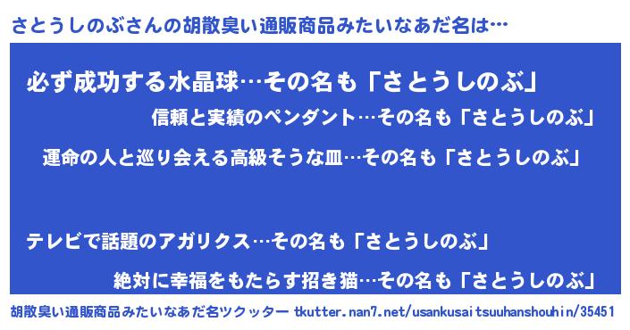 | 意味不明あだ名 | 『さとうしのぶフォーエバー』 |