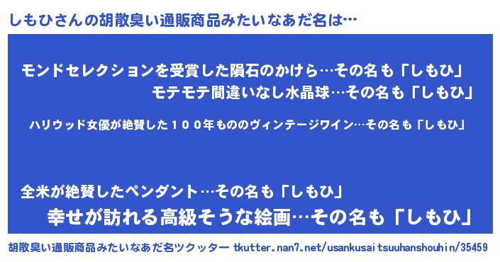 | ヘコむあだ名 | 『牛乳』『しもにー』『しもっちょ』 |