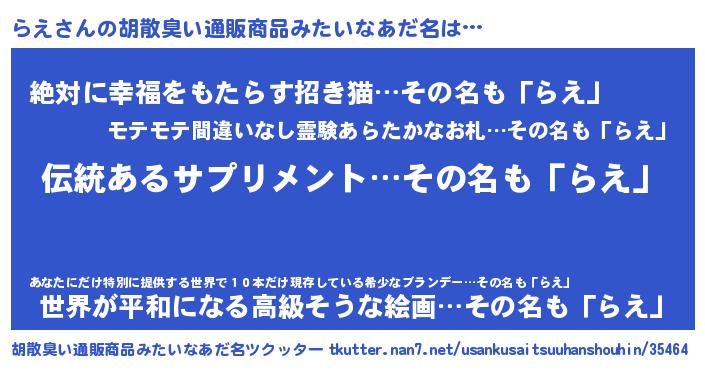 | ポケモン風あだ名 | 『ヒラエ』『ラエキング』『ゼニラエ』 |