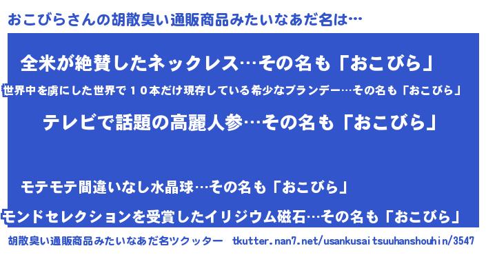 | 意味不明あだ名 | 『もやし科おこびら属』『自称おこびら』 |
