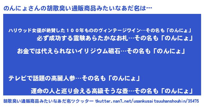 | ヘコむあだ名 | 『なまこ酢』『のんにー』『のん太郎』 |