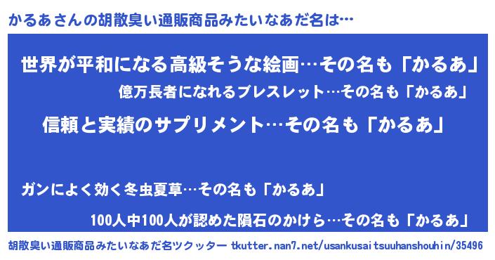 | 意味不明あだ名 | 『とにかく怪しいかるあ』 |