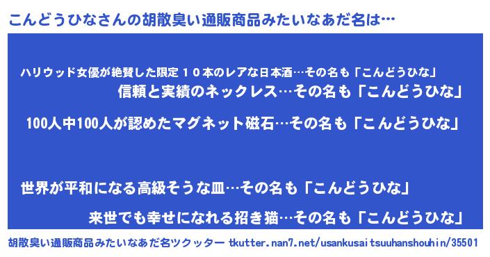 | ヘコむあだ名 | 『こんどうひな(小並感)』『こん太郎』 |