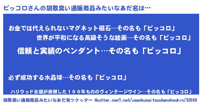 | 意味不明あだ名 | 『とにかく怪しいピッコロ』 |