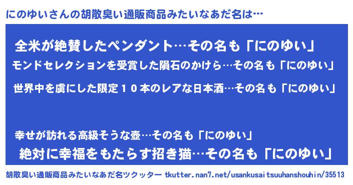 | 意味不明あだ名 | 『住所不定無職にのゆい(53歳)』 |