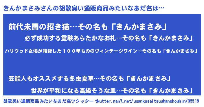| 意味不明あだ名 | 『住所不定無職きんかまさみ(1歳)』 |