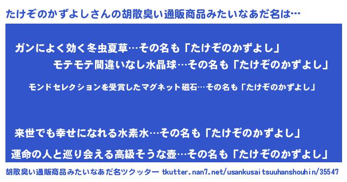 | ヘコむあだ名 | 『酢こんぶ』『たけっふぃ~』 |