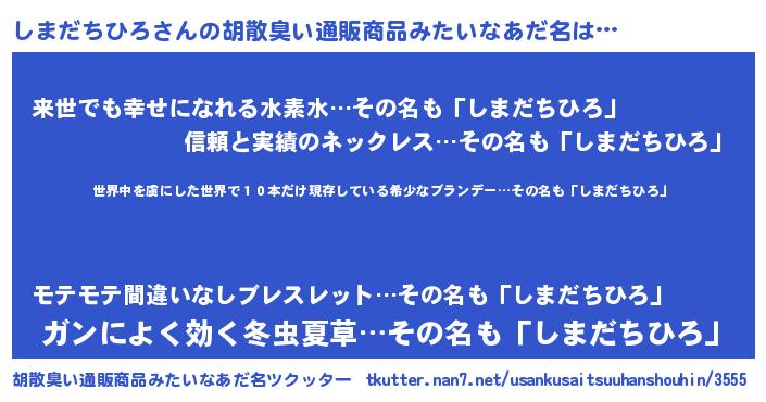 | ヘコむあだ名 | 『しまだちひろ(遠い目)』『しまっちょ』 |