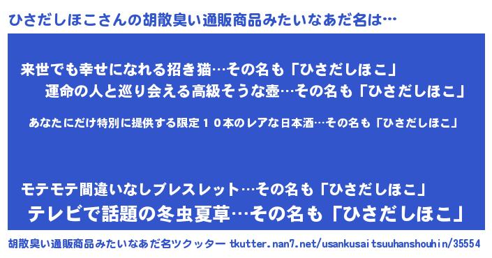 | 男性向けラノベタイトル風あだ名 | 『この素晴らしい世界にひさだしほこを!』 |