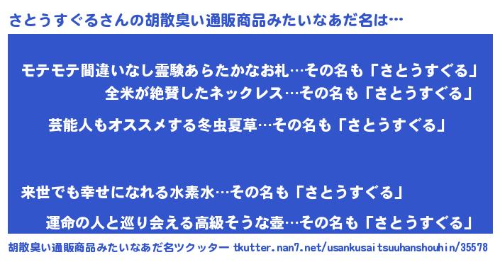 | 意味不明あだ名 | 『自称さとうすぐる』 |