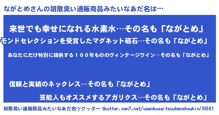| 意味不明あだ名 | 『ヨモギ科ながとめ属』『自称ながとめ』 |