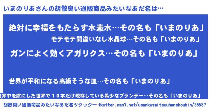 | ヘコむあだ名 | 『いまのりあ(爆)』『いまっふぃ~』 |