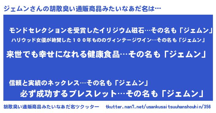| ヘコむあだ名 | 『ジェムン(爆)』『ジェにゅー』 |