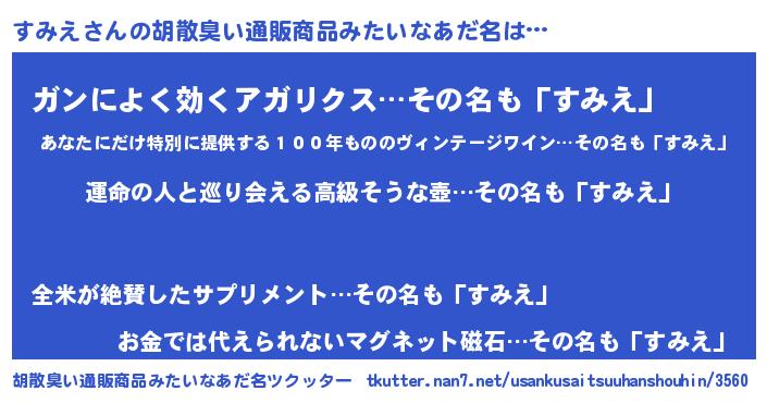 | 意味不明あだ名 | 『すみえフォーエバー』『自称すみえ』 |