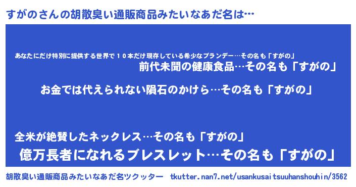 | ヘコむあだ名 | 『すがっふぃ~』『すがの(震え声)』 |