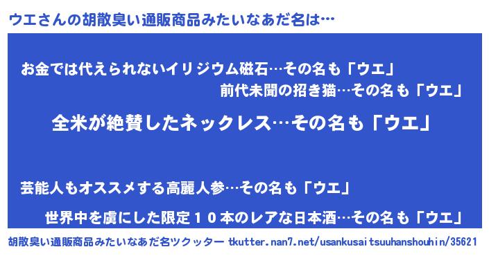 | 意味不明あだ名 | 『とにかく怪しいウエ』『永久保存ウエ』 |