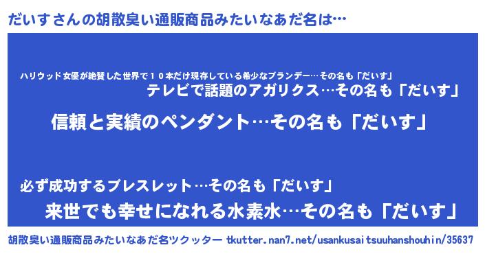 | 意味不明あだ名 | 『とにかく怪しいだいす』『自称だいす』 |