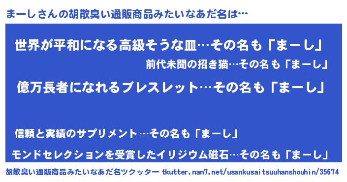 | ヒーロー風カッコイイあだ名 | 『スーパーマーシ』『ウルトラまーしマン』 |