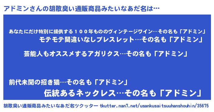 | 男性向けラノベタイトル風あだ名 | 『Re:アドミンから始める異世界生活』 |