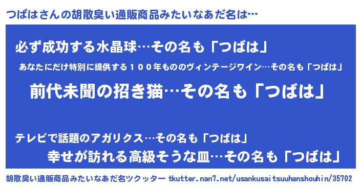 | ヘコむあだ名 | 『つばは(小並感)』『つばにー』 |