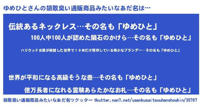 | ピコ太郎風あだ名 | 『ユメ五郎』『ユコ一郎』『ユユ太郎』 |