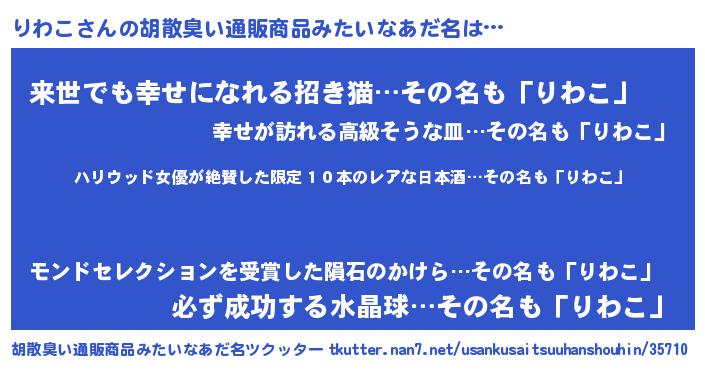 | ヘコむあだ名 | 『りわこ(笑)』『りわもー』『りわを』 |