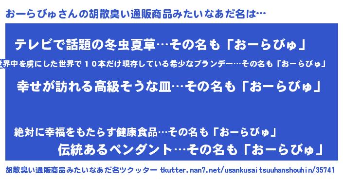 | ヒーロー風カッコイイあだ名 | 『ウルトラおーらびゅマン』 |