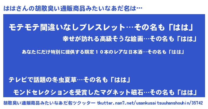 | ヘコむあだ名 | 『ははもー』『なまこ酢』『はは(爆)』 |