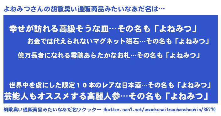 | 女子向けラノベタイトル風あだ名 | 『よねみつの玉の輿計画!』 |
