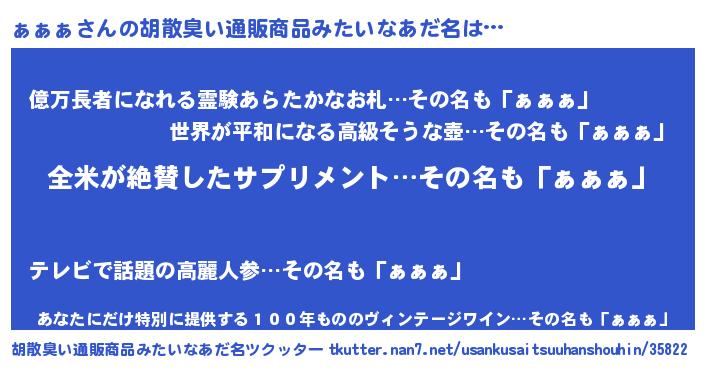 | 意味不明あだ名 | 『とにかく怪しいぁぁぁ』 |