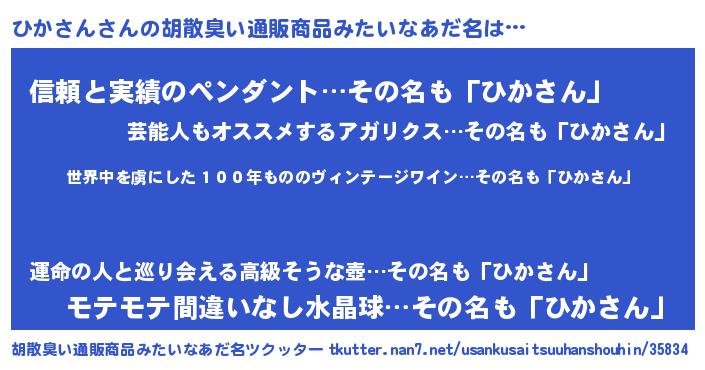 | ヘコむあだ名 | 『ひかお』『ひかっふぃ~』『つくし』 |
