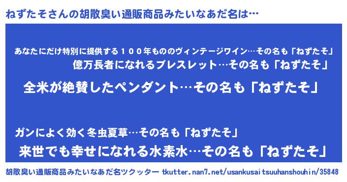 | ヘコむあだ名 | 『ねずぷりん』『ねずたそ(小並感)』 |